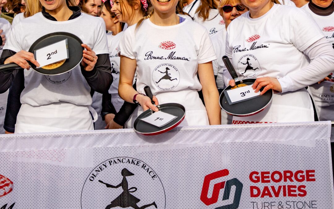 We’ll find out whether Eloise has won the International Challenge when we link up with Liberal, Kansas tonight and compare winning times. Allison Souster and Yasmin Bullen took the three-legged crown this year. We also had two guest runners with us – Clodagh McKenna from ITVs ‘This Morning’ who were filming live from the Race, and Tessy Barnett from Liberal, Kansas, running in her 25th Pancake Race. There were lots of lovely pancakes being served throughout the morning and great fun was had in the Marquee decorating pancakes and splatting the rat 😀 Thank you so much to all our supporters across the town and our amazing band of volunteers who helped us make this fantastic event happen. Shall we do it again next year? Photo courtesy of David Peach Photography